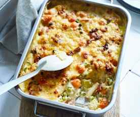 Kohlrabi kartoffel auflauf mit basilikumsauce.